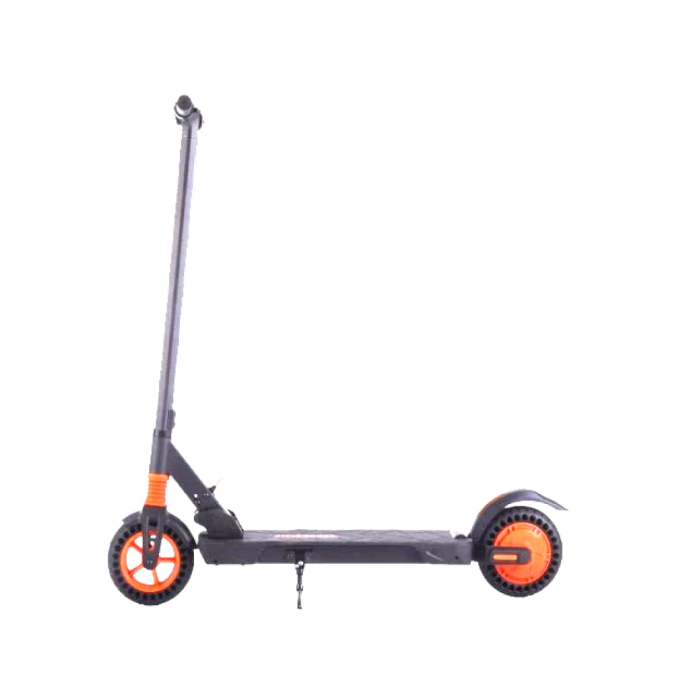 Крепкий корпус из алюминия выдержит нагрузку до 120 кг. Небольшая масса 14,5 кг и высота 108 см позволяет легко сложить и перенести самокат. Самокат оборудован стильными и прочными колёсами с оранжевыми элементами, диаметром переднего и заднего колеса 8 дюймов. Благодаря наличию амортизаторов поездка по городу, несмотря на несовершенства дороги, будет плавной и мягкой. Электронная тормозная система уменьшит расход электроэнергии и сохранит на более долгое время тормозные колодки.