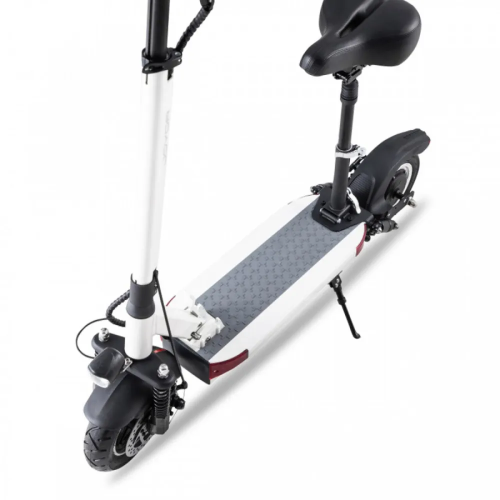 Главное преимущество данной модели, обеспечивающее высокие показатели – съемное сиденье, с которым ваши поездки будут в разы комфортнее! Встроенный электродвигатель мощностью 500 Вт гарантирует развитие скоростей до 35 км/ч, а встроенная аккумуляторная батарея обладает емкостью в целых 26000 мАч. При полностью заряженном аккумуляторе, двигаясь с максимальной скоростью, вы сможете преодолеть огромное расстояние в 100 км. Для увеличения длительности и дальности поездки можно установить границу максимальной скорости. Для полного заряда батареи понадобится порядка нескольких часов.