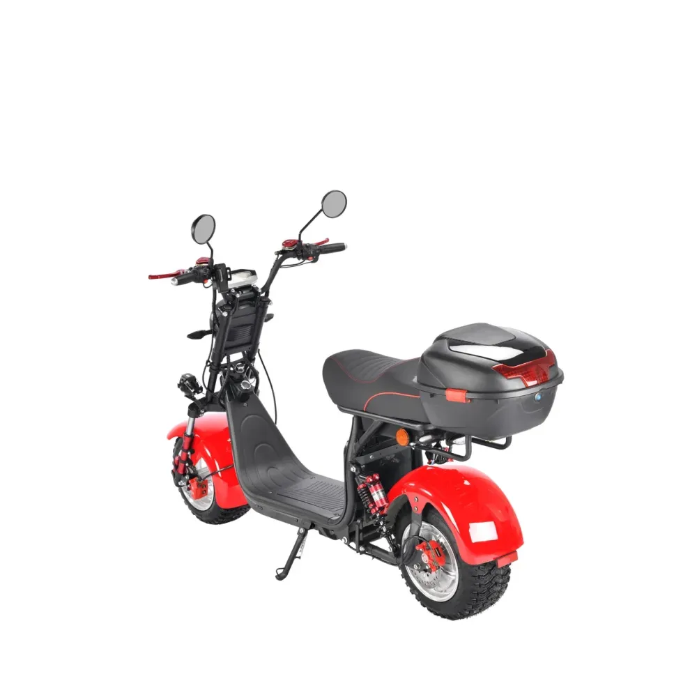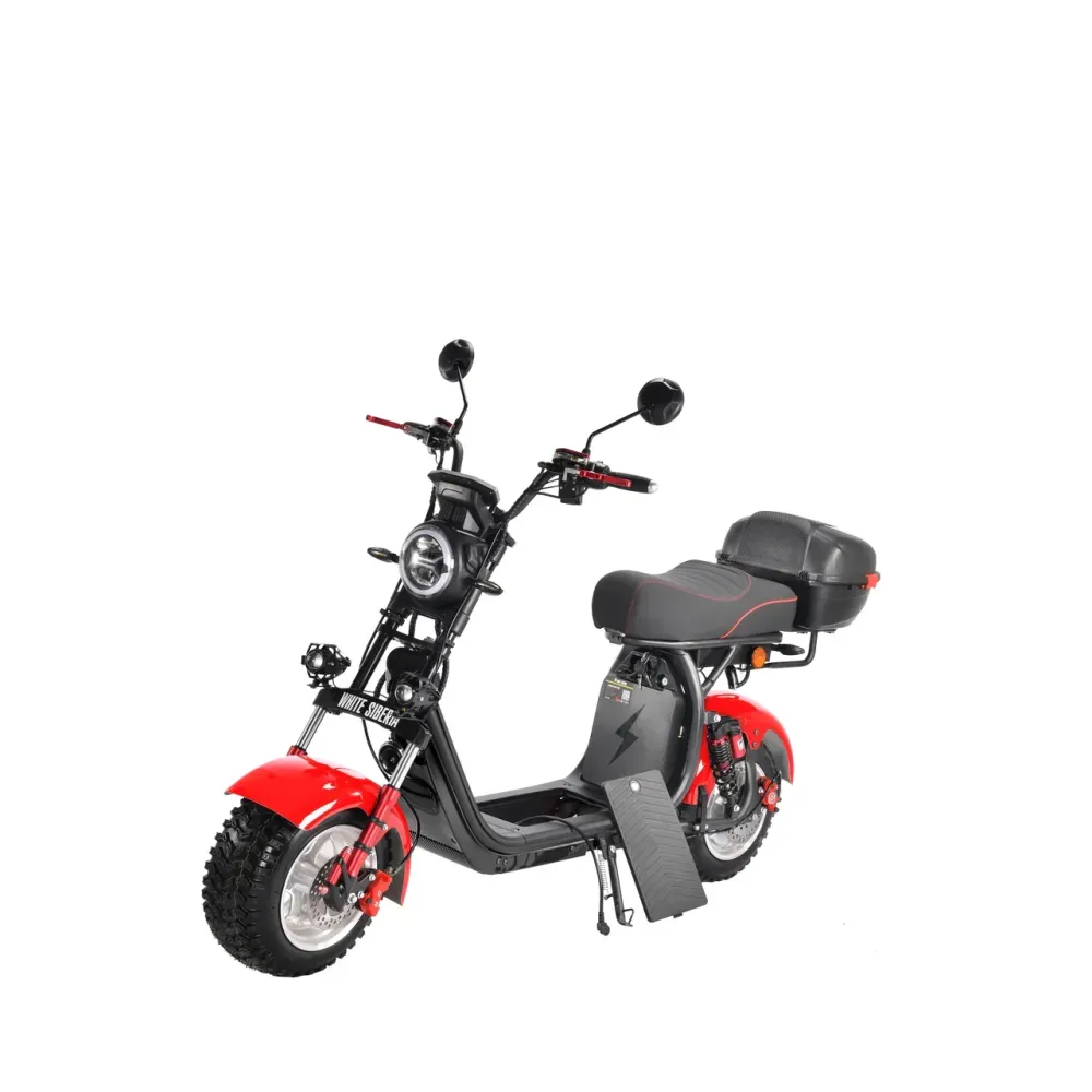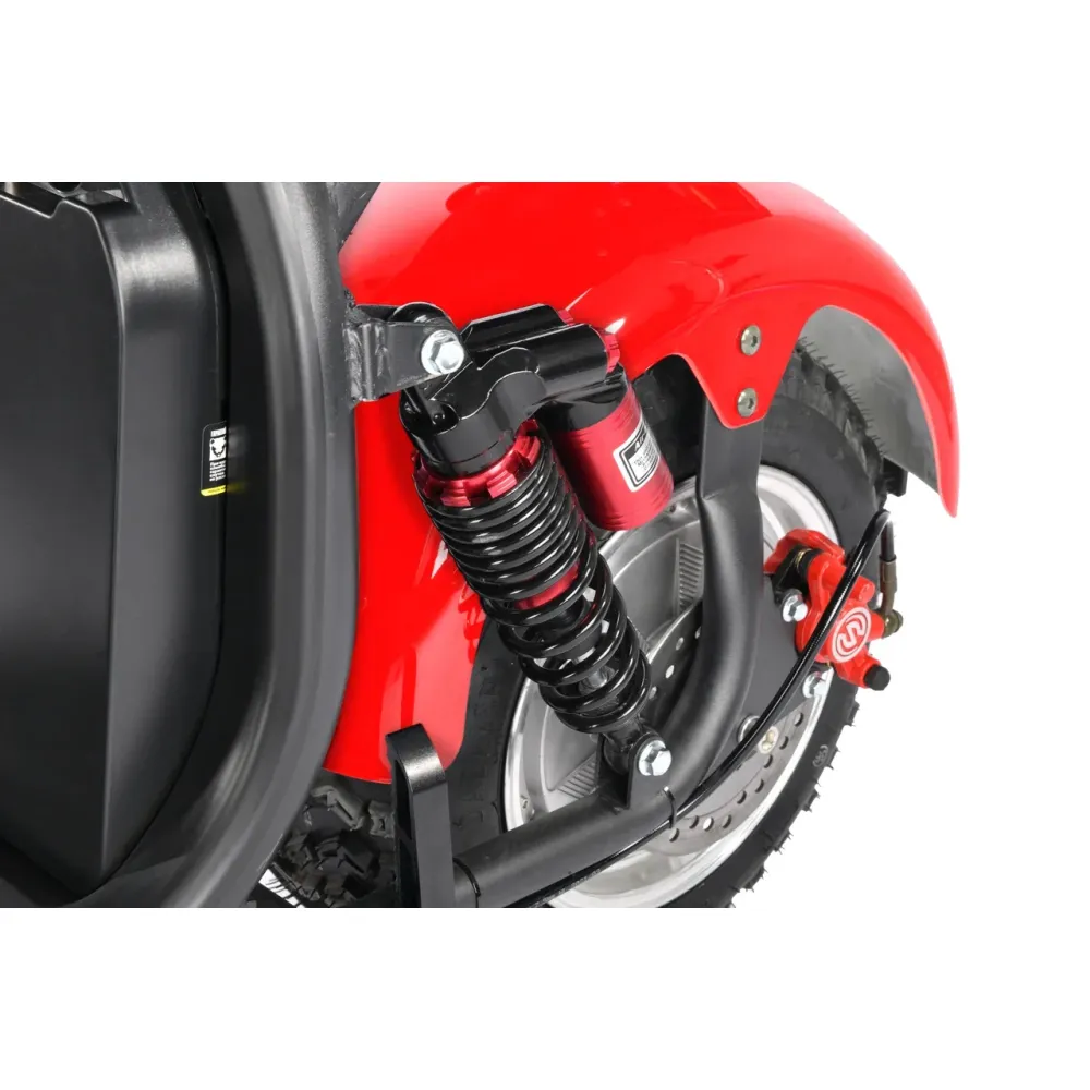 Электроскутер CityCoco WS-Pro+ 2500W – произведенная в красных цветовых оттенках техника способна доказать совершенство езды на практике. Пневматические агрессивные колеса, по внешнему виду напоминающие шины внедорожника созданы для езды по городской местности и бездорожью. Убедиться в технических характеристиках можно прямо сейчас. Предлагаем сделать заказ и купить электроскутер в нашем интернет-магазине.