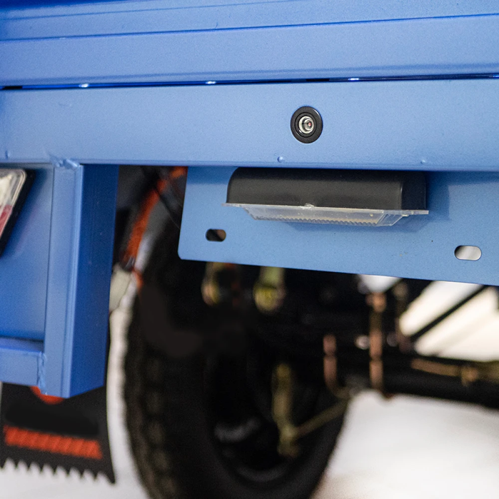 Усиленная конструкция рамы, барабанный тормоз и светодиодная передняя фара гарантируют безопасное вождение в любых условиях. Крытая герметичная кабина с открывающимися с двух сторон дверями обеспечивает защиту от непогоды, а механизм стеклоочистителя поддерживает чистоту лобового стекла.