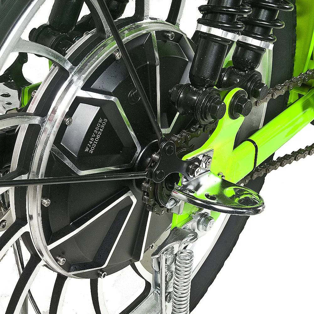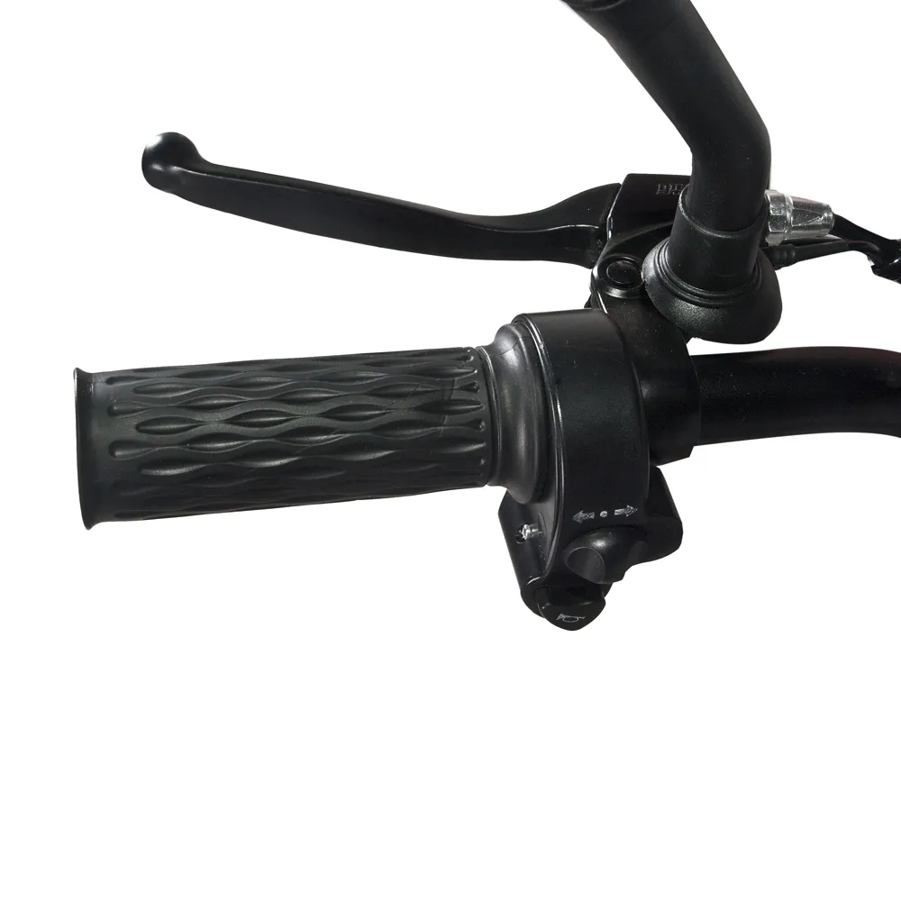Техника оснащена бортовым компьютером с ЖК-дисплеем. Алюминиевая цельная рама рассчитана на грузоподъемность до 200 кг. АКБ размещена за подседельной частью, надежно защищена водонепроницаемым блоком, обеспечивающим защиту от соприкосновения с райдером. Двигатель сущностью 350 Вт гарантирует набор скорости до 40 км/час и запас хода до 50 км. При необходимости райдер может переходить на режим педалирования. Качество и стиль езды определяется пользователем самостоятельно с помощью переключателя скоростей.